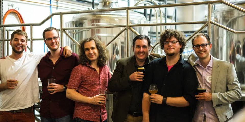 from left: Ben Holmes (owner of Aeronaut Brewery), Peter Van Zandt Lane (bassoonist and composer), Phillipp Stäudlin (sax), Michael Duncan Smith (event director), Matt Sharrock (percussion), Keith Kirchoff (curator)